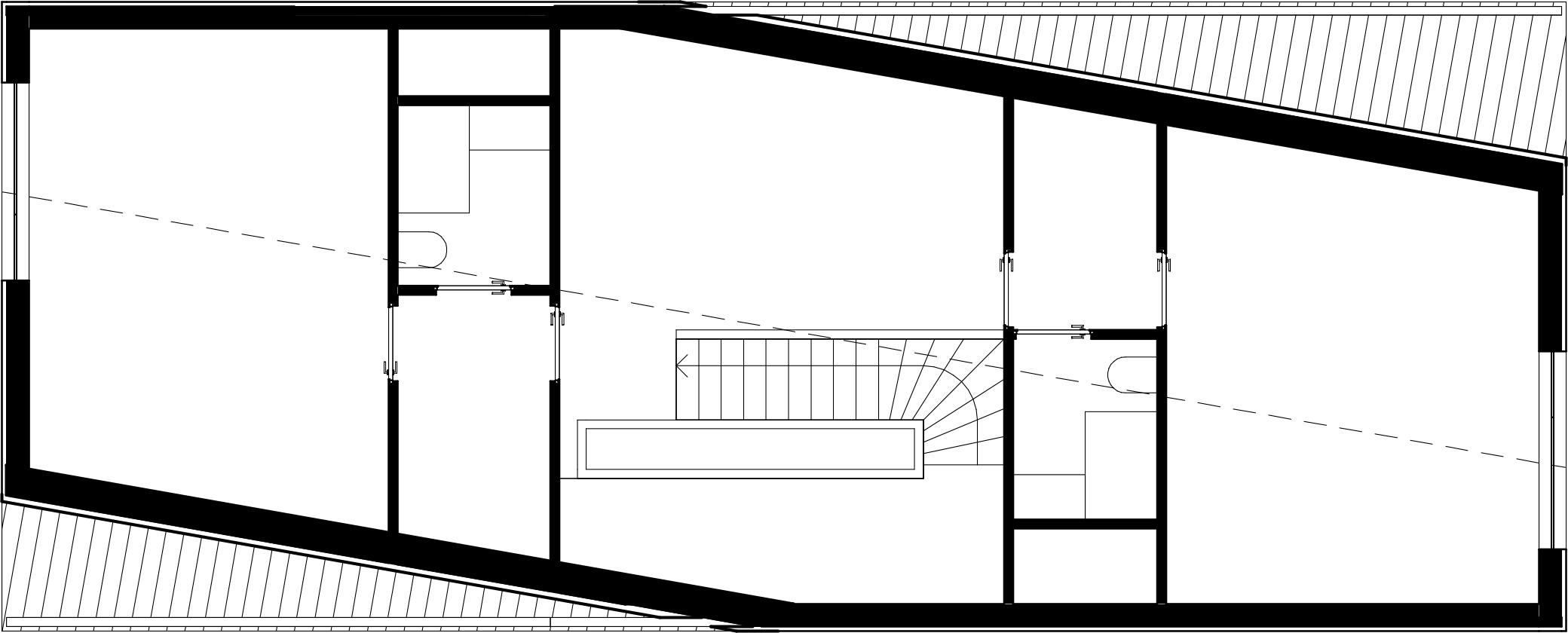 The house was designed in a tiny Transylvanian village - but could be anywhere in the region, where traditional village houses here are usually one story 7 m wide gable roofed buildings, positioned perpendicular to the street. The simple idea of rotating the ridge slightly moves the shape of the building, while the form and the size fit in the local scale. The otherwise minimalist shaped building is a home of a commuting family of four.